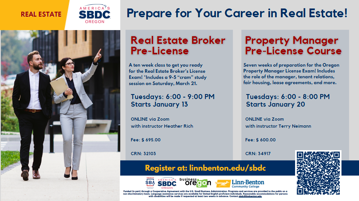 - Topics like starting a business, marketing, business planning, payroll/HR laws, QuickBooks, small business management, Real Estate/Property Manager Licensing, Construction Contract Board Licensing, and more. Check out our classes this term.
